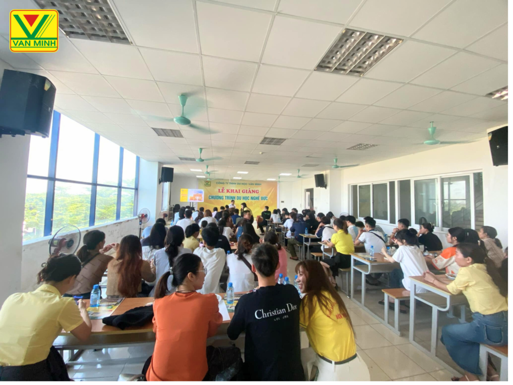 Buổi lễ khai giảng có sự tham dự của hơn 100 quý vị phụ huynh, các bạn học viên, cùng cán bộ giảng viên, nhân viên Du học Văn Minh.