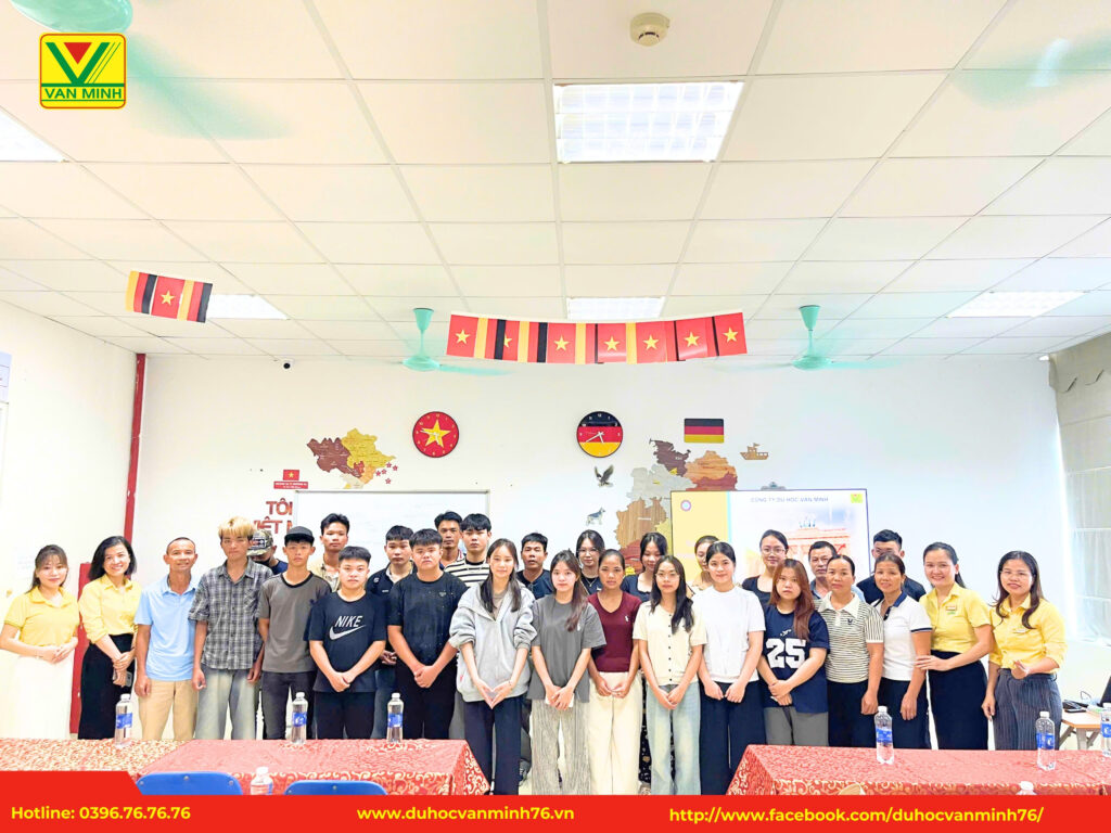 Sáng ngày 03/09/2025, Trung tâm Du học Văn Minh đã long trọng tổ chức lễ khai giảng lớp tiếng Đức DK76 trong bầu không khí hứng khởi và tràn đầy năng lượng. Sự kiện đánh dấu khởi đầu cho hành trình học tập của các bạn học viên đang ấp ủ ước mơ du học nghề tại Đức.