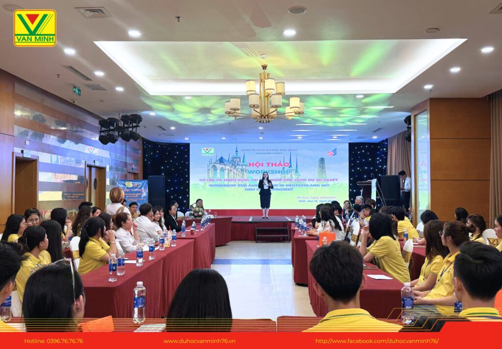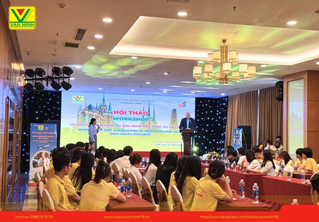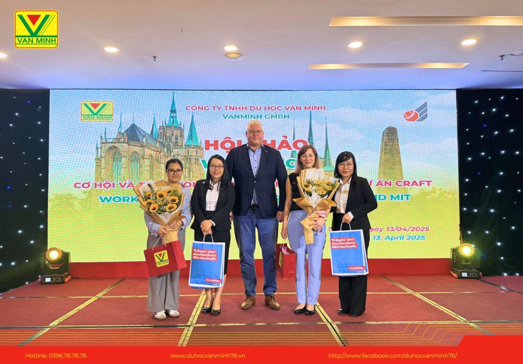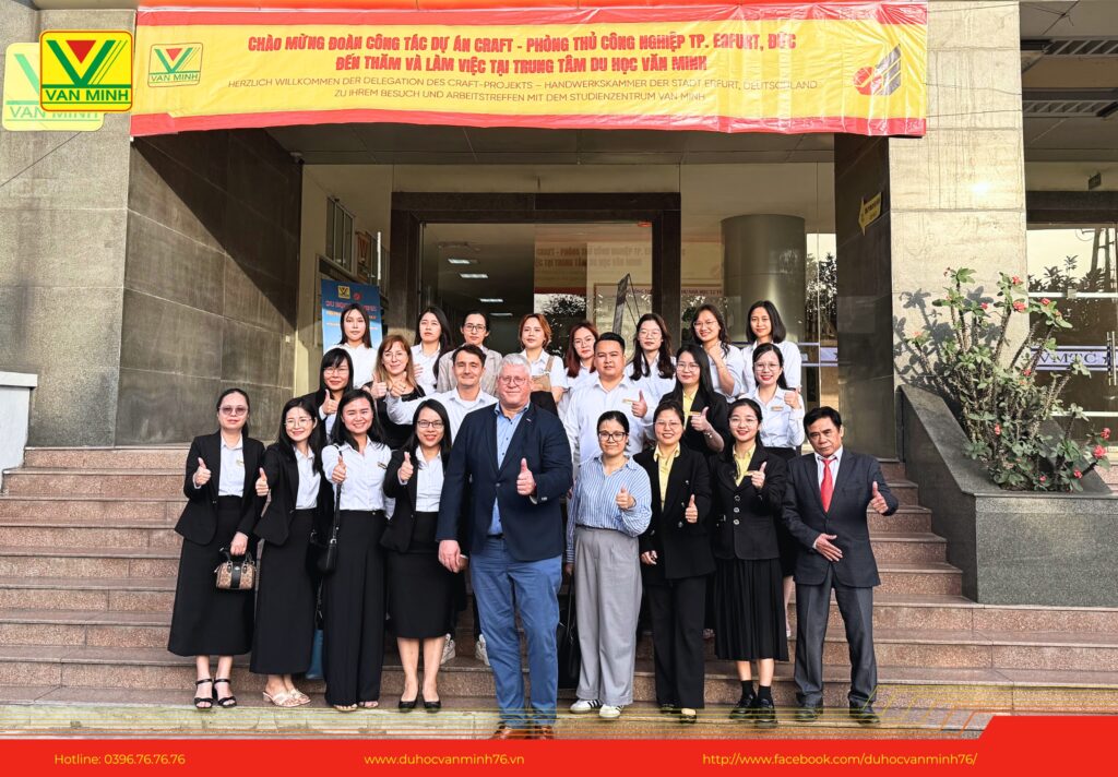 Chiều ngày 13/04/2025, tại Khách sạn Mường Thanh Cửa Đông, Văn Minh Group đã rất vinh dự đón tiếp đoàn công tác đến từ Phòng thủ công nghiệp thành phố Erfurt – Đức để phối hợp tổ chức hội thảo với chủ đề “Cơ hội và triển vọng du học nghề Đức cùng Dự án CRAFT”. Sự kiện đánh dấu bước tiến mới trong hành trình đồng hành cùng học viên Văn Minh trên con đường du học nghề Đức.