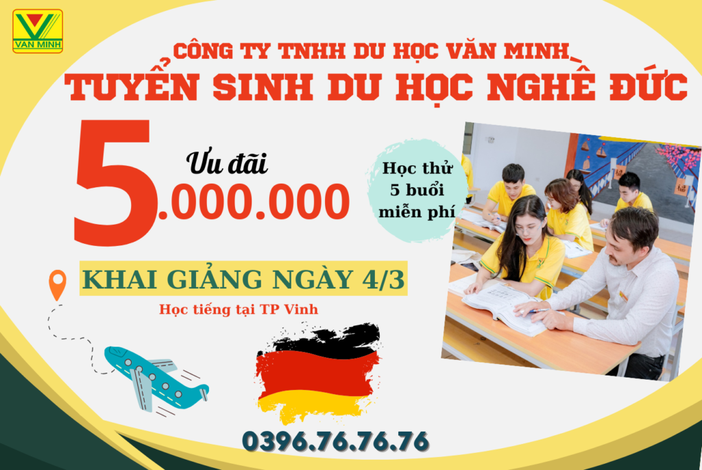 Nhằm hỗ trợ tối đa nhu cầu học tiếng Đức, phục vụ cho các bạn trẻ có định hướng tham gia chương trình du học nghề Đức, trong ngày 04/3/2024 Văn Minh sẽ khai giảng các lớp tiếng Đức dành cho người mới bắt đầu, đăng ký tham gia ngay để cùng Văn Minh bắt đầu hành trình chinh phục tiếng Đức .